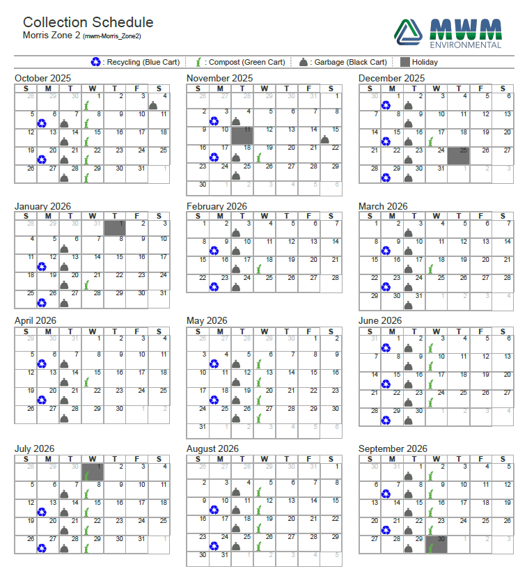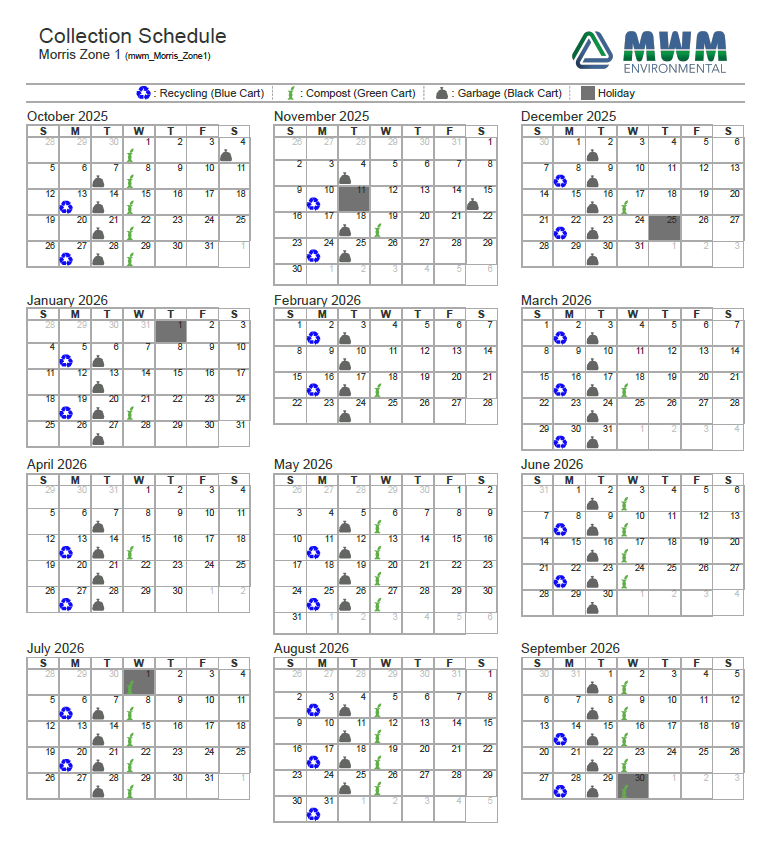 Morris Zone 1 -West of 75 Hwy - 2026 Collection Schedule