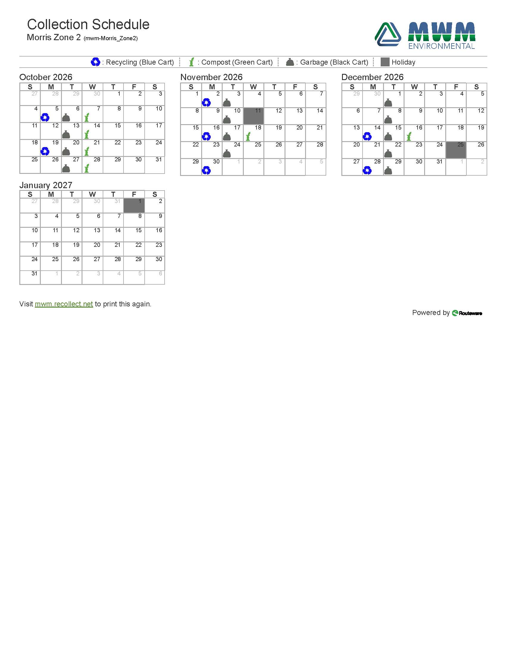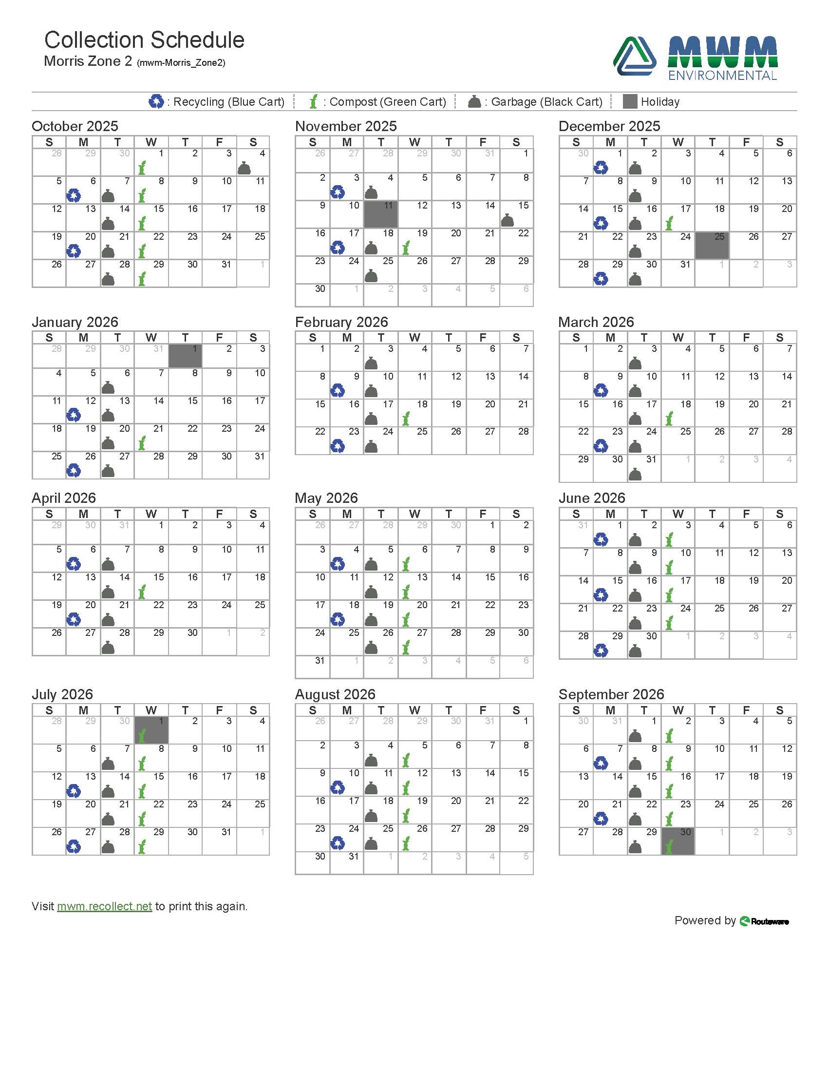 Morris Zone 2– East of 75 Hwy - 2026 Collection Schedule