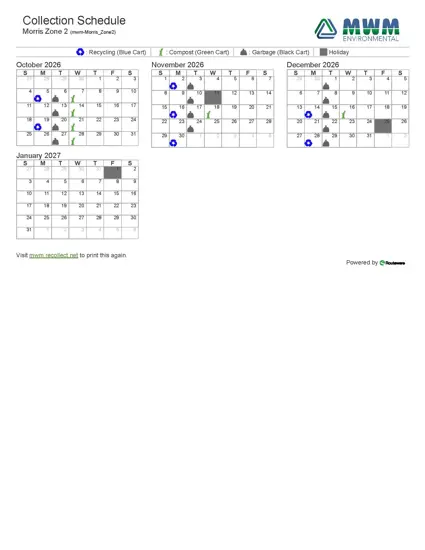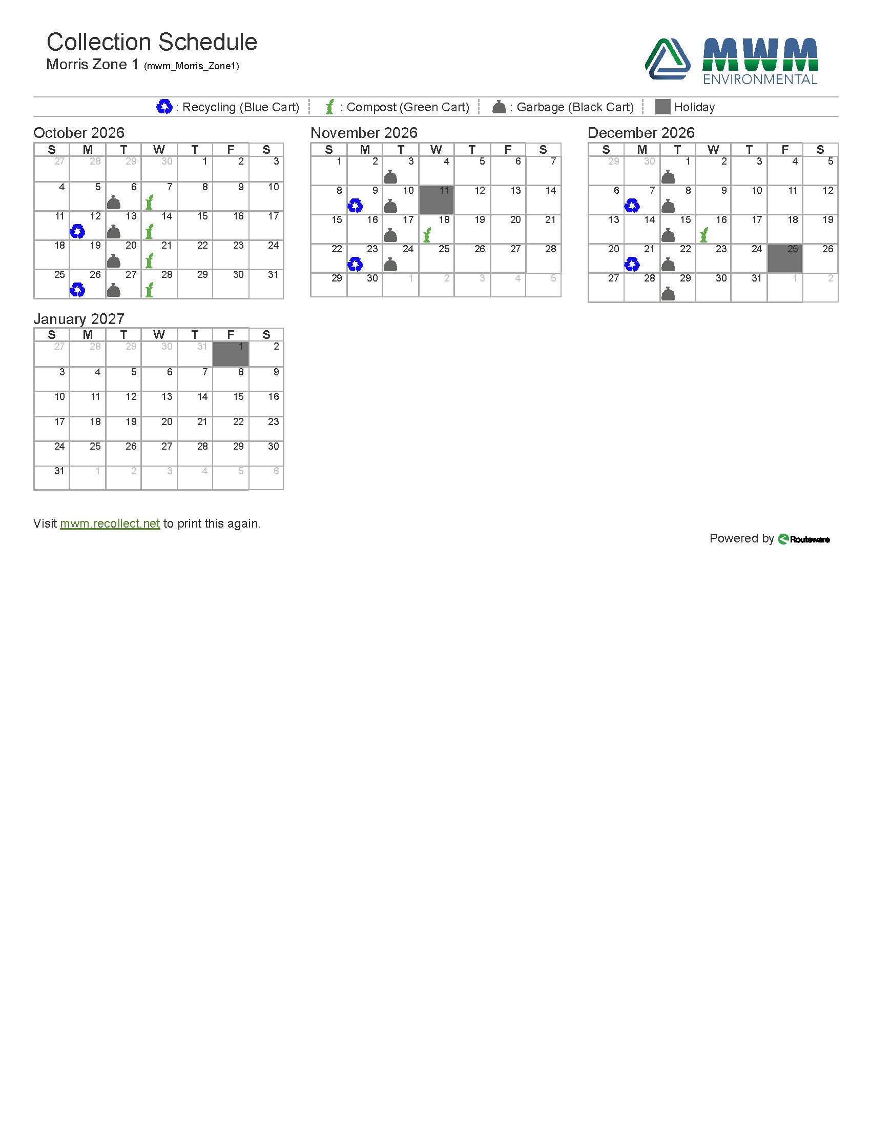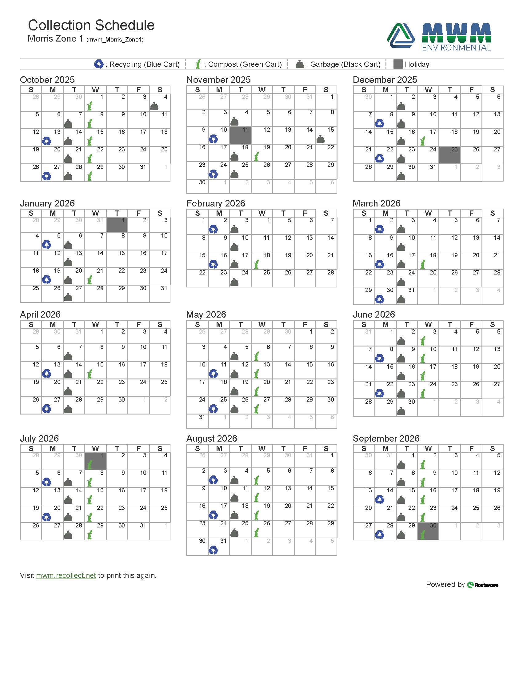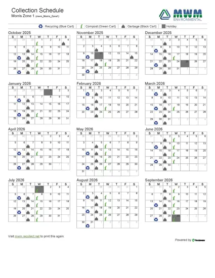 Morris Zone 1 -West of 75 Hwy - 2026 Collection Schedule