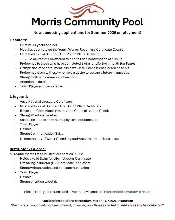 Morris Pool- Now Hiring